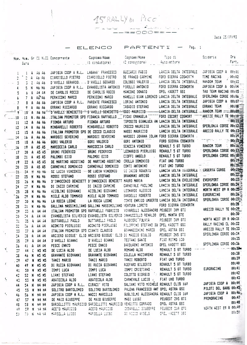 Elenco Partenti Edizione 15: